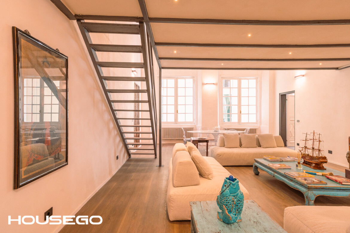 I miei 160 mq sono il risultato di una ristrutturazione d’autore, firmata da un noto architetto ligure, che ha saputo fondere storia e contemporaneità con equilibrio e personalità. L’ingresso si apre su un ampio living open space, scenografico e luminoso, ispirato ai loft newyorkesi, ideale per ricevere e vivere la casa con stile. La cucina, di grandi dimensioni, è completamente attrezzata con marchi di alto livello ed è stata progettata come uno spazio centrale, funzionale e di forte impatto estetico.  La zona notte si compone di una camera soppalcata e di una camera padronale con cabina armadi su misura.